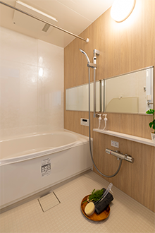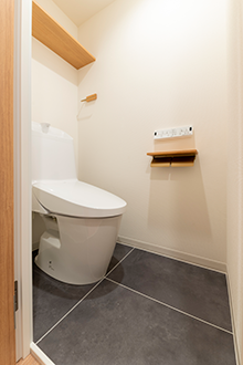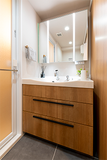 水回りもお部屋全体の色味と併せたカラーリングで統一感があります。