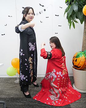 普段は優しく笑顔が絶えない新卒採用チームですが、今回はインパクト大の特攻服スタイル!